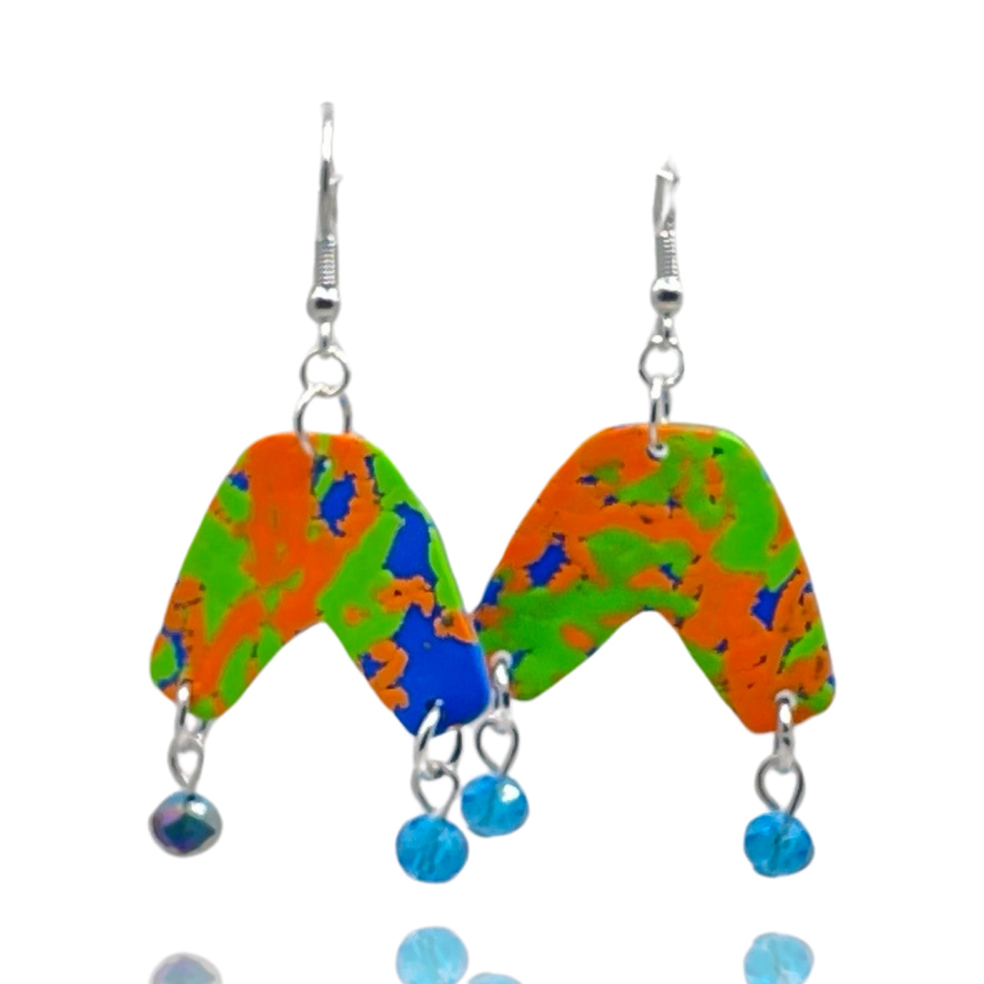 Channel your inner 90s kid with these amazingly lightweight, handmade polymer clay earrings, in orange, blue and green.