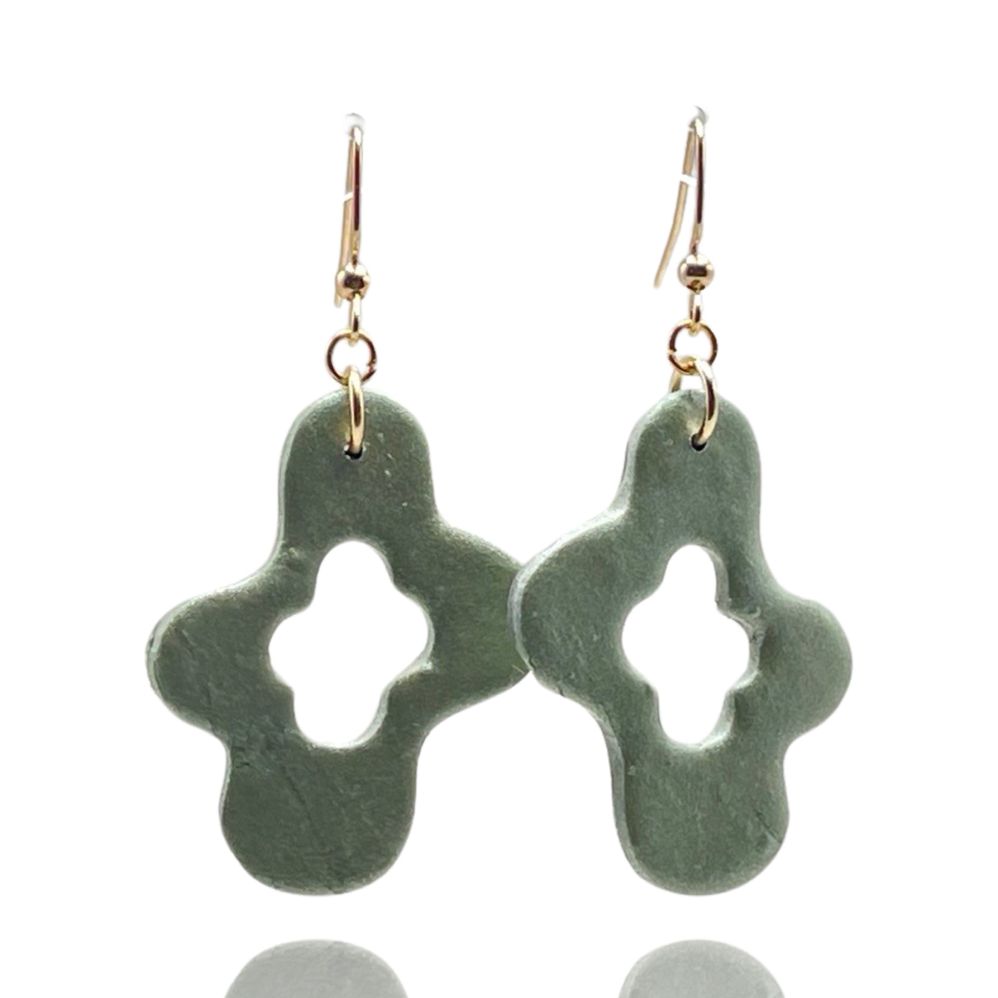 Green silver earrings handmade from lightweight polymer clay.