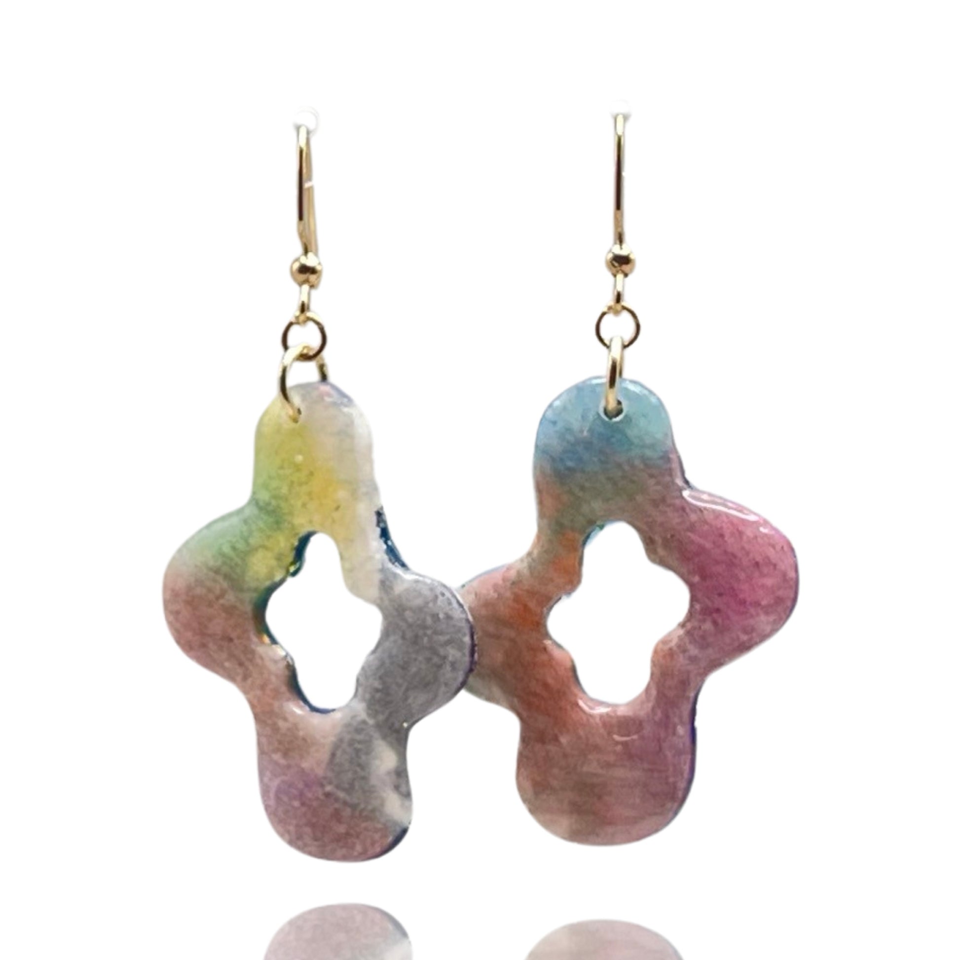 Get ready to make a statement with these earrings! These lightweight, handmade polymer clay earrings are the perfect addition to any outfit. Their pastel colors pop in any light and react to blacklight rays for a unique look. 💫🎨"