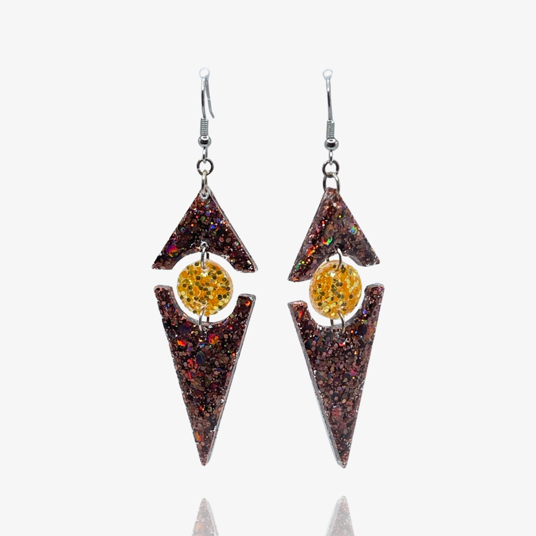 Make a bold statement with these glittery daggers! These resin earrings have a light-weight design and a mix of sunny yellow and warm brown glitter that's sure to have you feeling fierce. Ready to pierce the day? (Don't worry, it's all in good fun.)