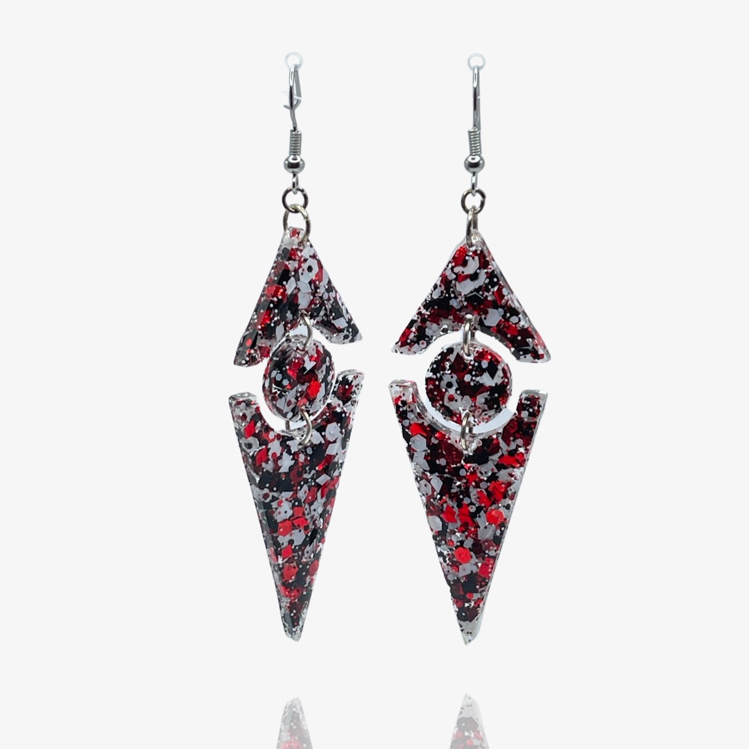 Ready to hit the slots in style? These Casino Daggers are your best bet! Lightweight resin earrings come in black, white and red glitter, proving you don't have to leave your sparkle on the casino floor. Get lucky with these showstopping earrings!!