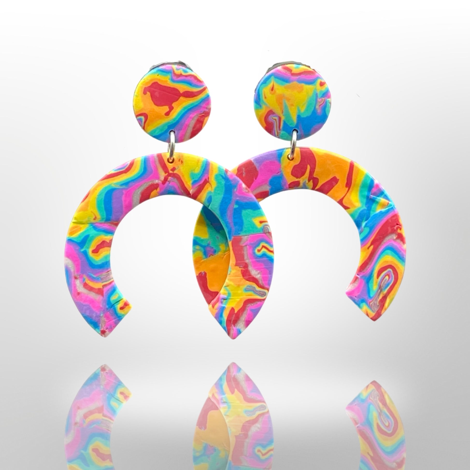 Travel through time with our Have a Nice Trip Earrings! Handmade from lightweight polymer clay, these nostalgic earrings capture the essence of the 70s and add a funky touch to any look. Embrace your individuality and make a bold statement with our trippy design. 🌈
