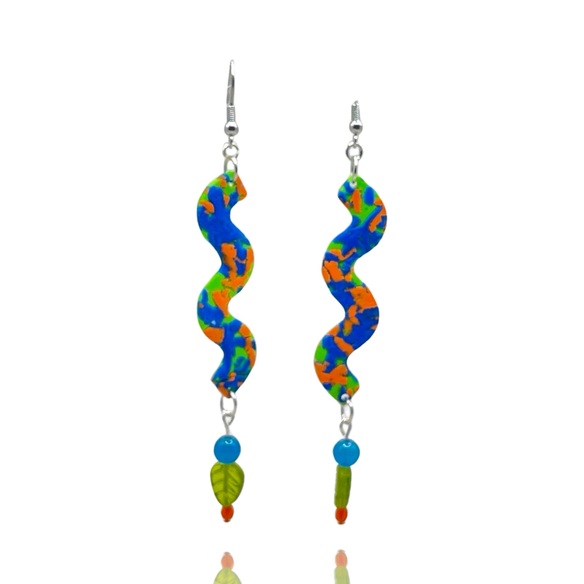 Channel your inner 90s kid with these amazingly lightweight, handmade polymer clay earrings, in orange, blue and green.