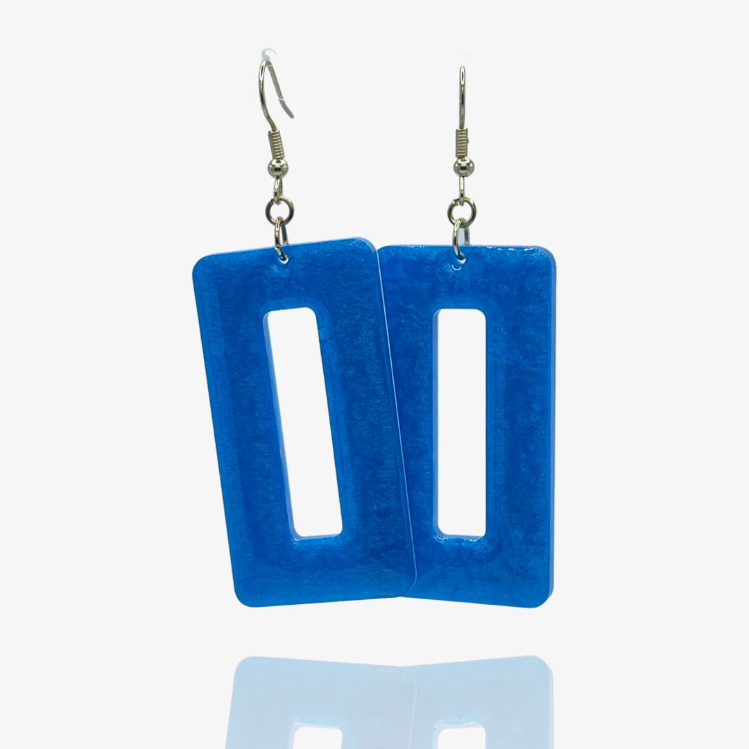 Introducing Watery Blue Olivia, the lightweight resin earrings that will bring oceanic beauty to your wardrobe! With a simple tall rectangle shape, these watery blue stunners bring a splash to your lobes. Surf's up! 🌊